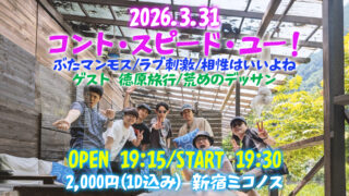 2026/2/27 吉本を辞めた芸人たちが一同に会し大暴れするライブ!ここでしか聞けないトーク満載!ネタもありです! 【出演】 ファイティングボンバー メリージェーン 鉄グミ おにい玉 【時間】 開場 […]