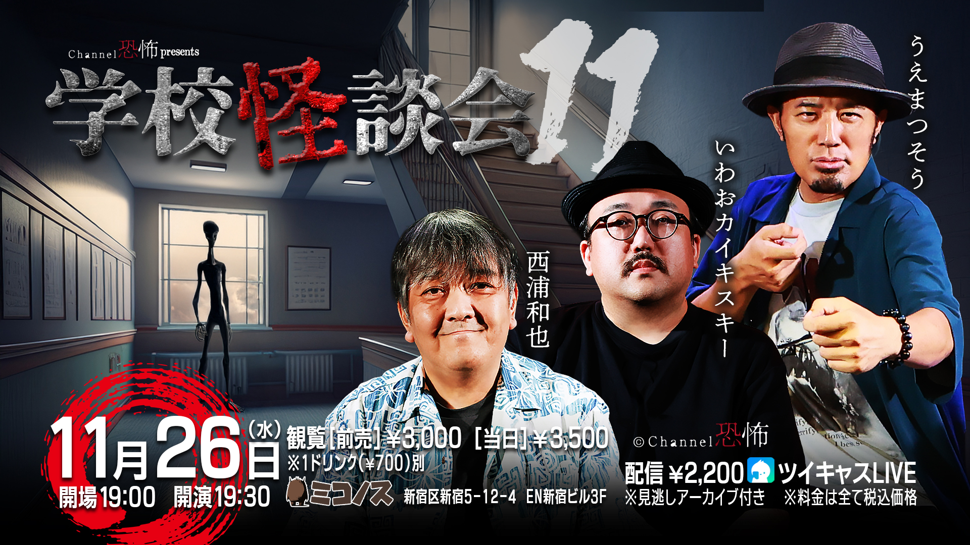 地獄先生こと現役の体育教師うえまつそうがホストを務める会に怪談界のレジェンド怪談師が参戦。実話怪談作家のオリジネイターの一人。自らの危険を顧みず、怪談を集める姿勢はまさに怪談蒐集家・西浦和也。怪談ユニット“怪談恐不知”いわおカイキスキー!今宵も最恐の学校怪談を思う存分にお楽しみください。